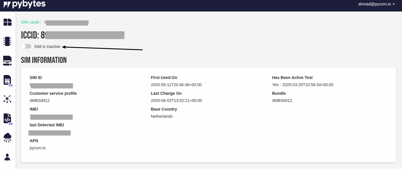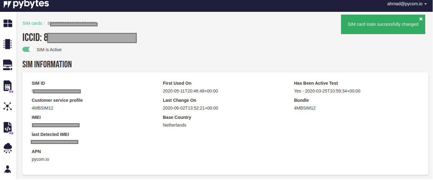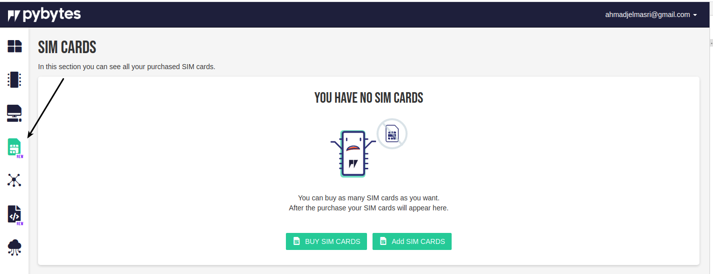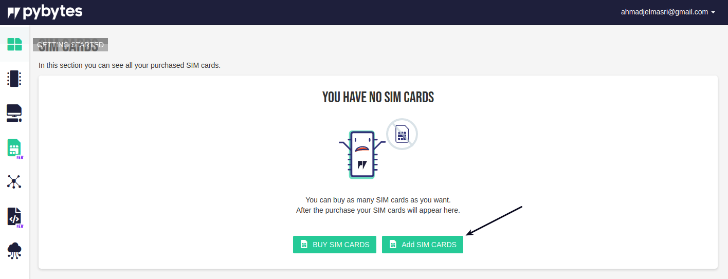 - When all sim cards are linked to your Pybytes account you can see them listed under Sim cards section.