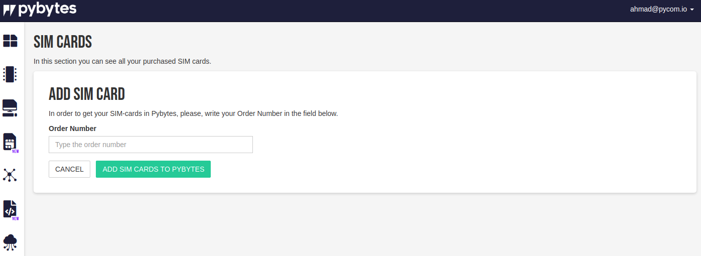 - Click ADD SIM to Pybytes (this will validate all sim cards you have purchased in this order)