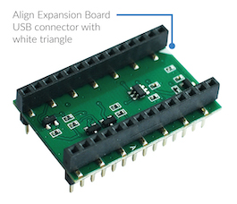 To correctly connect a WiPy 2.0, LoPy or SiPy to the Deep Sleep Shield, align the white triangle on the Shield with the LED of the Pycom Device. Once the Pycom Device is seated onto the Deep Sleep Shield, this can then be connected to the Expansion Board