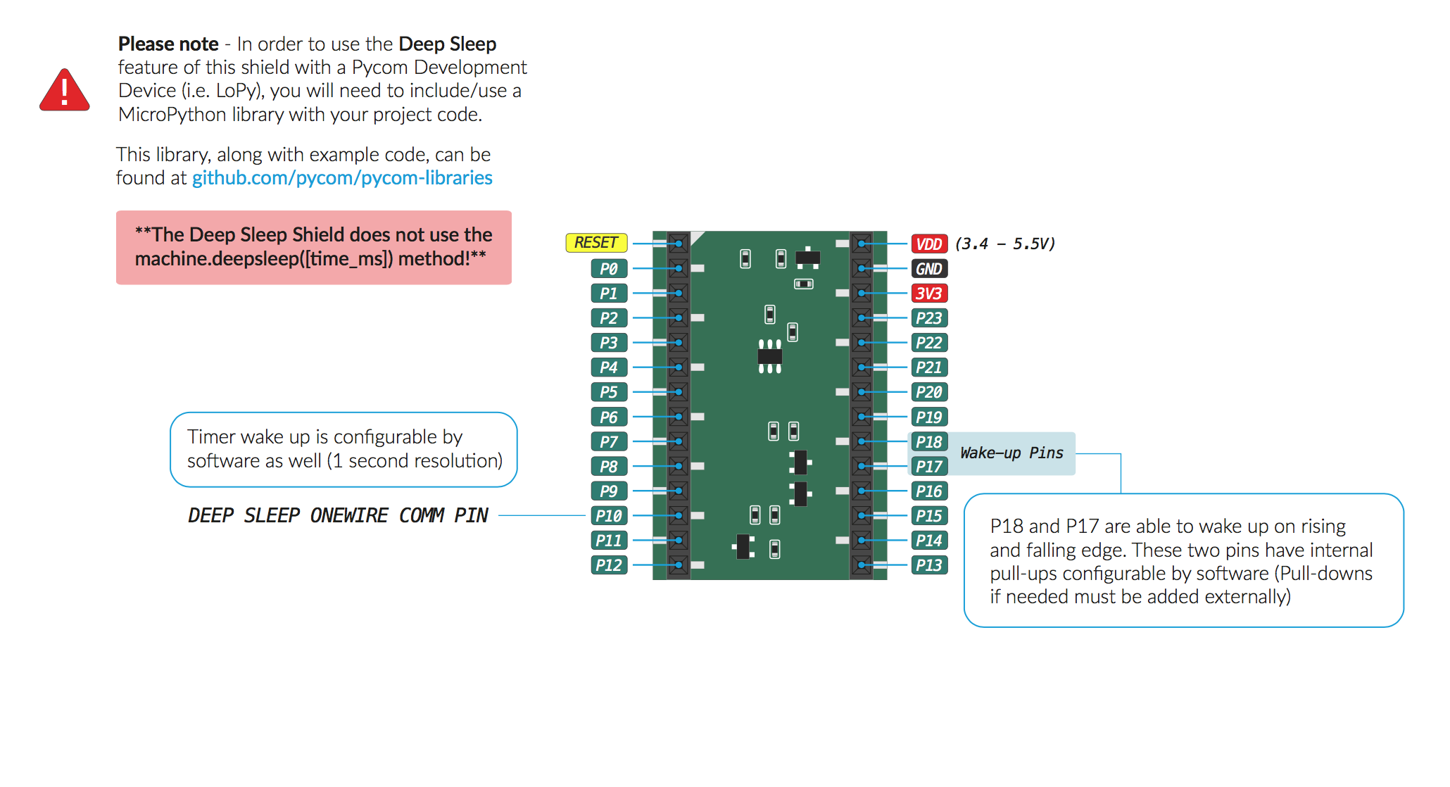 The pinout of the Deep Sleep Shield is available as a PDF File