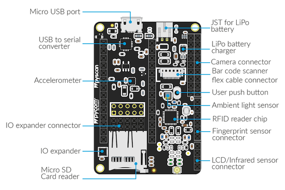 The Pyscan shield allows you to scan RFID and NFC tags and includes an accelerometer and light sensor.