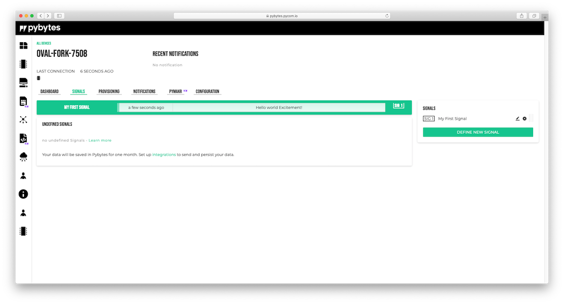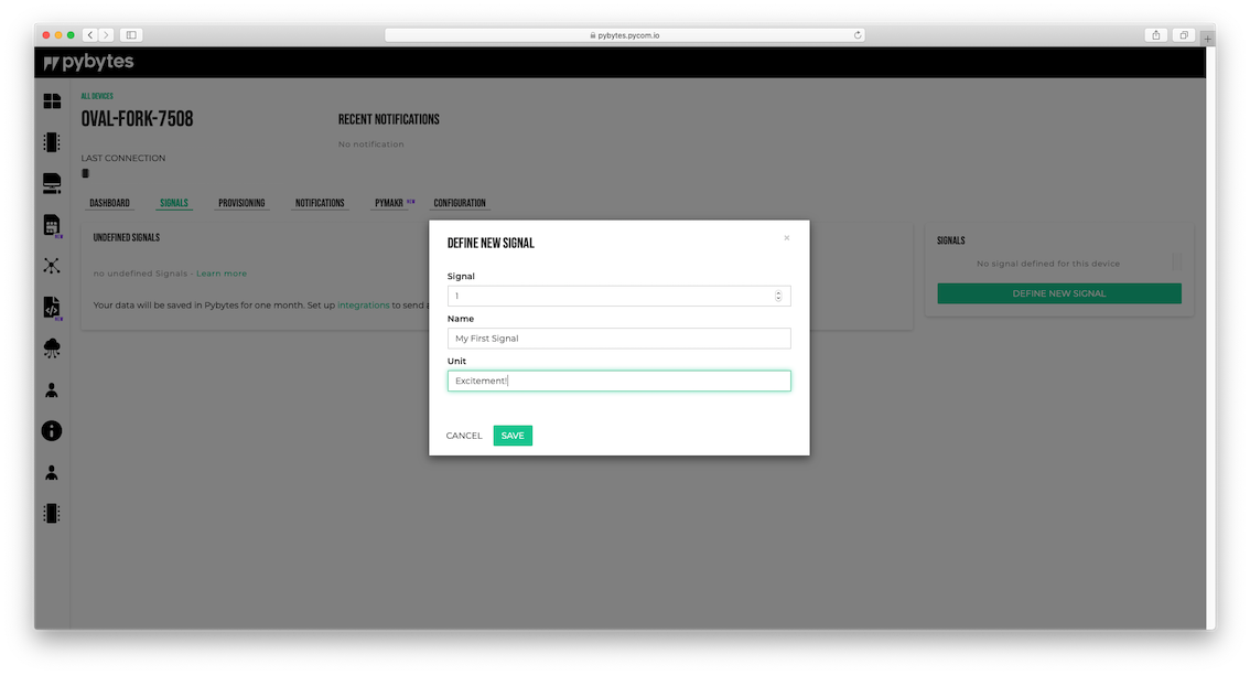 We’re assuming that you have already connected your device to Pybytes. In case you haven’t, check how to add your device here. After you’re done with that, you can proceed to the next example.