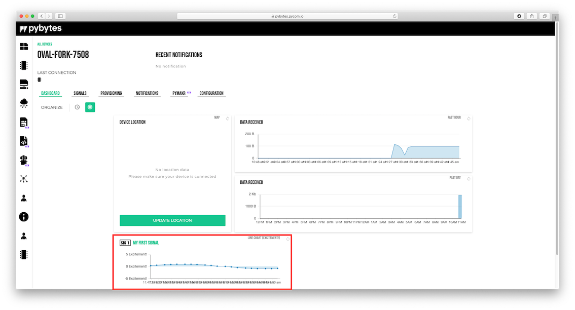 Now you’ve learned how to set up your device’s dashboard to display data. Also, you can add more widgets to your device’s other signals.