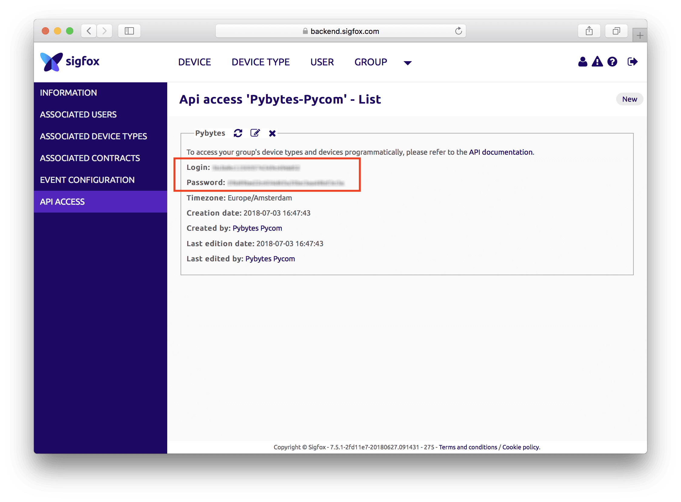 Once you have your account set up and are logged into Sigfox backend, you need to create API credentials for Pybytes.