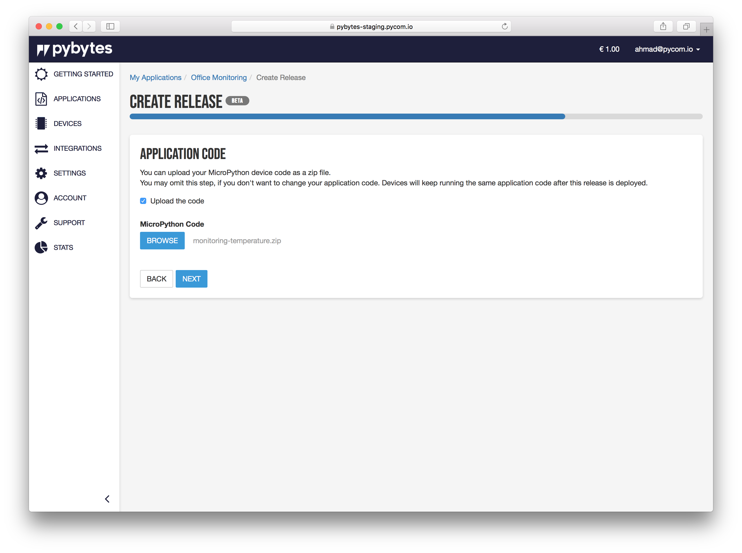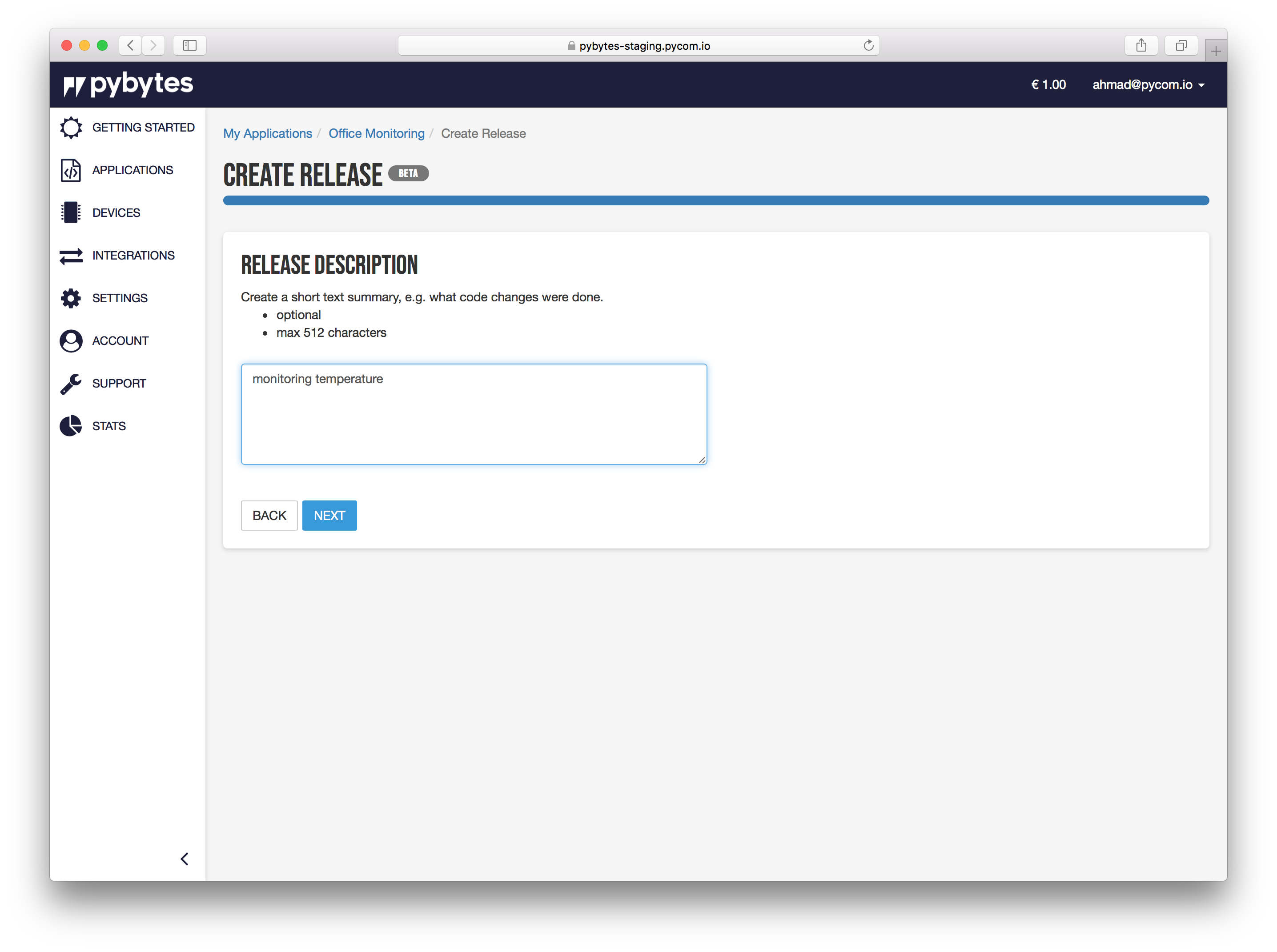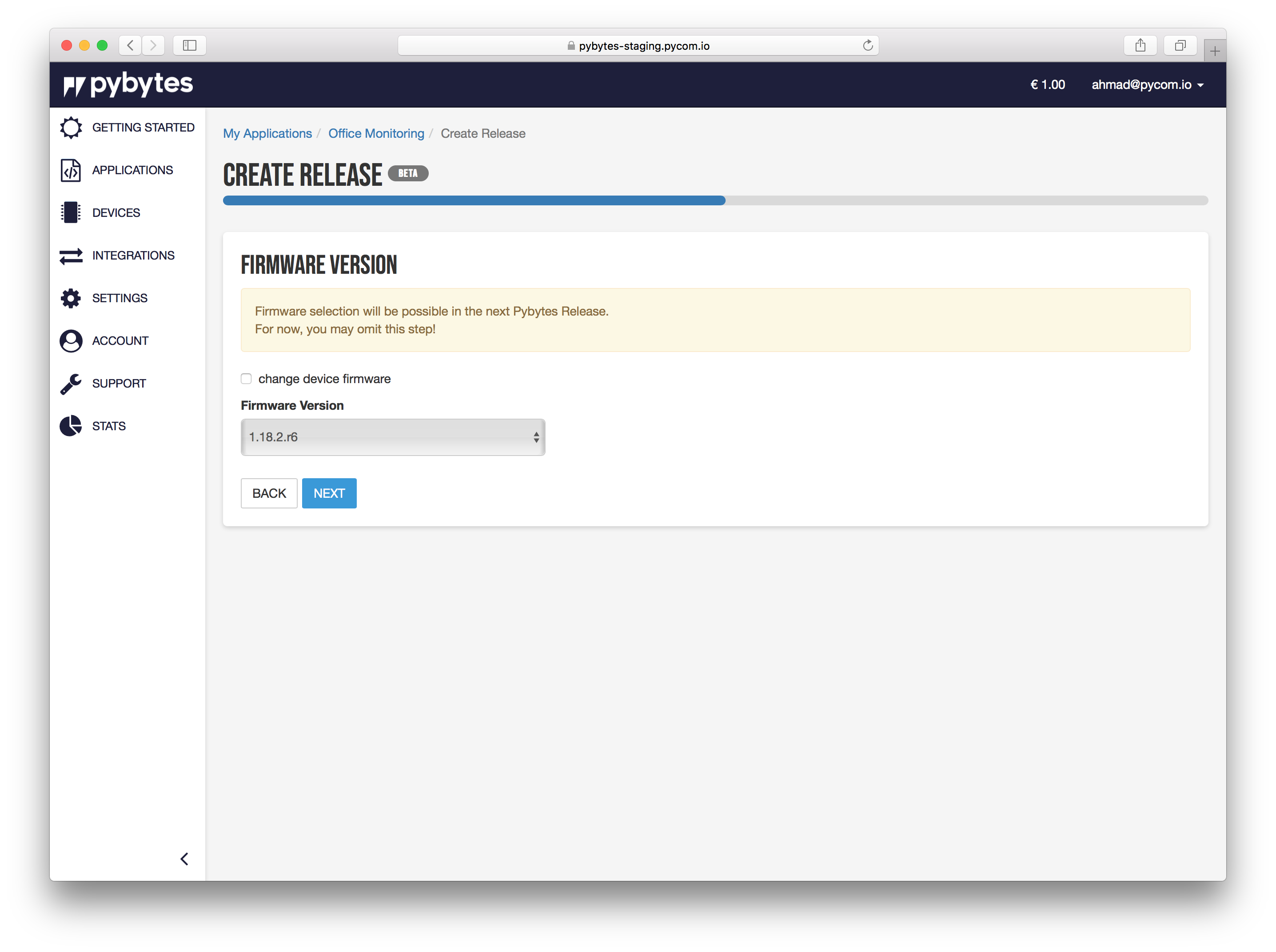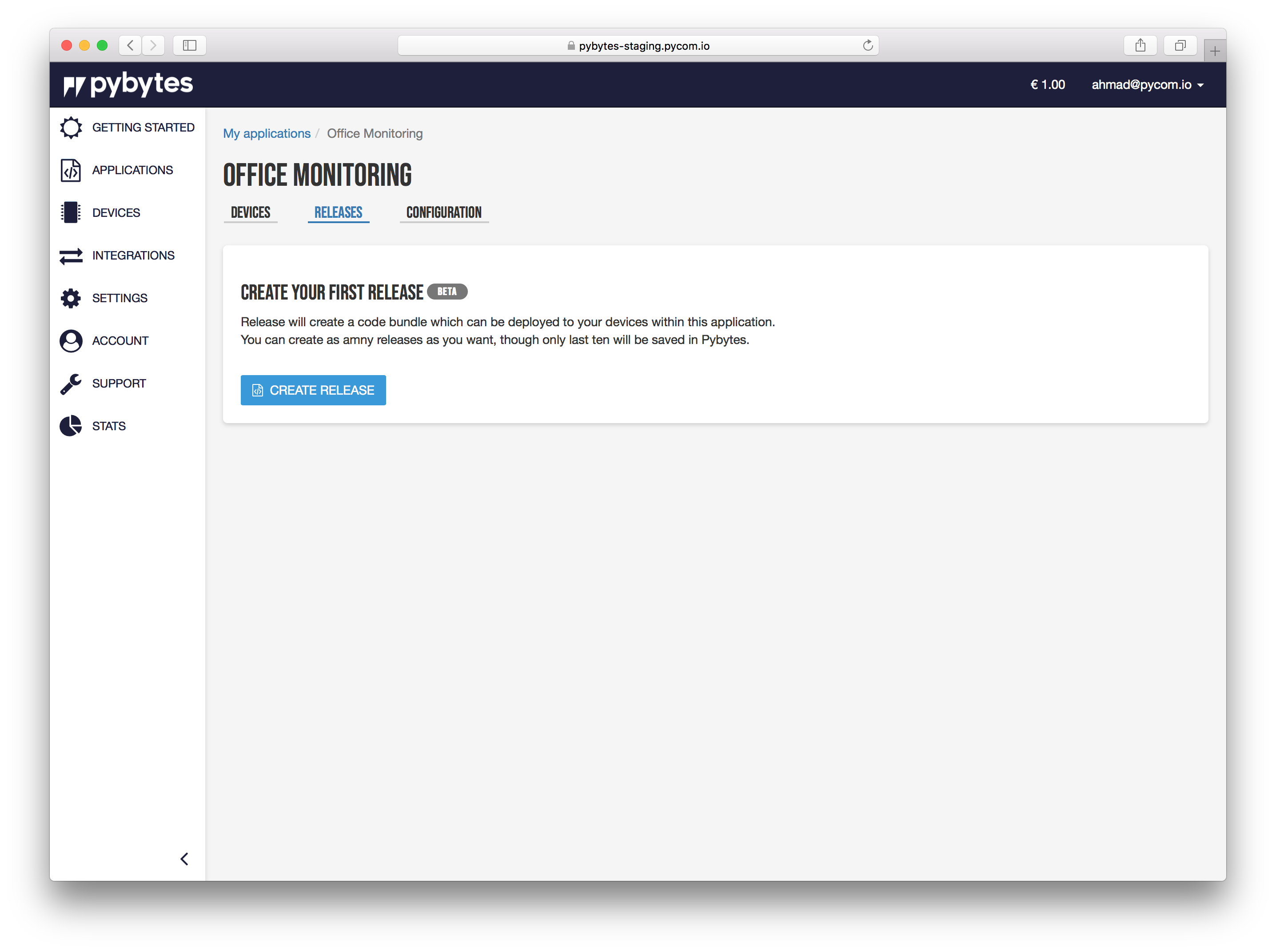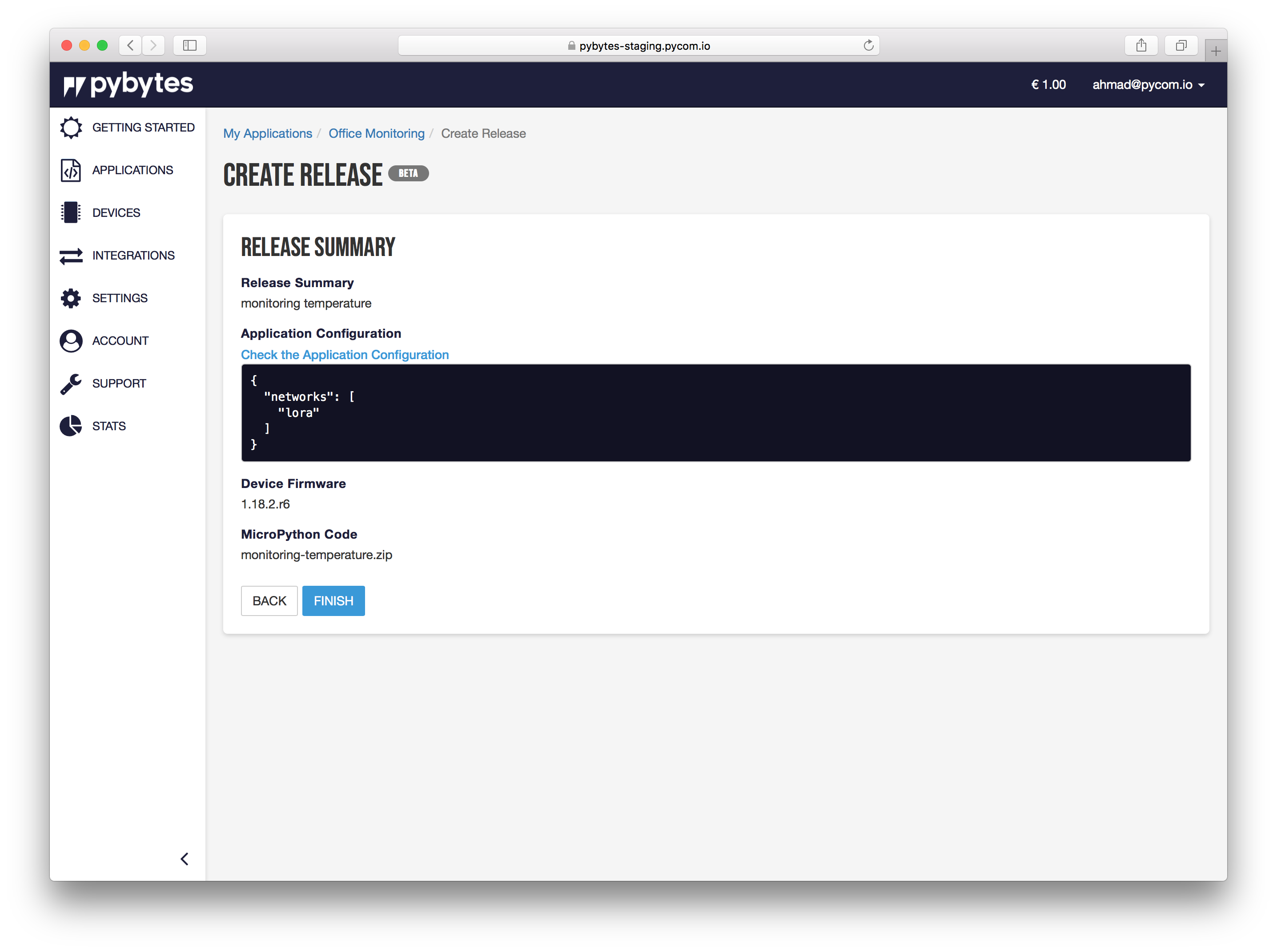 In Pybytes, go to Applications -> My applications -> select target application -> Releases Page: