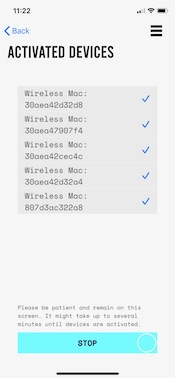 - After pressing the START button, a list of devices will appear on the screen. It may take up to several minutes to provision all of your devices. The first device usually appears on the screen within one minute.