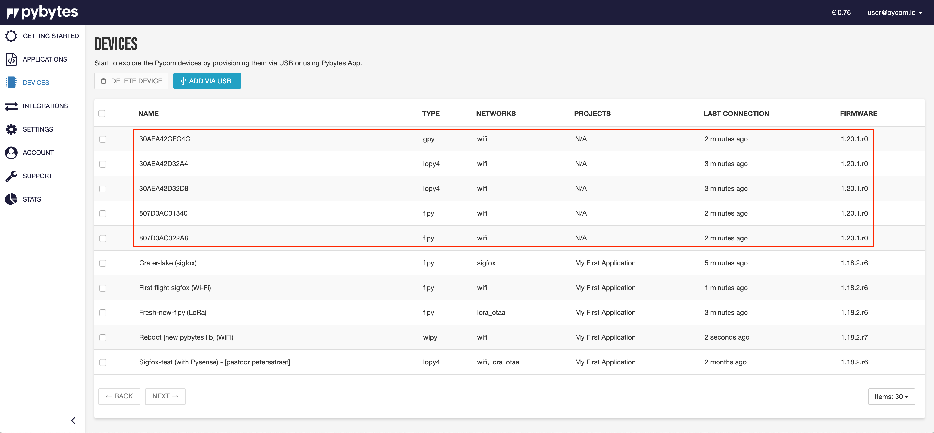 - You cannot provision the same devices on the different Pybytes account unless you erased them completely and flashed the latest firmware again with FW updater tool.